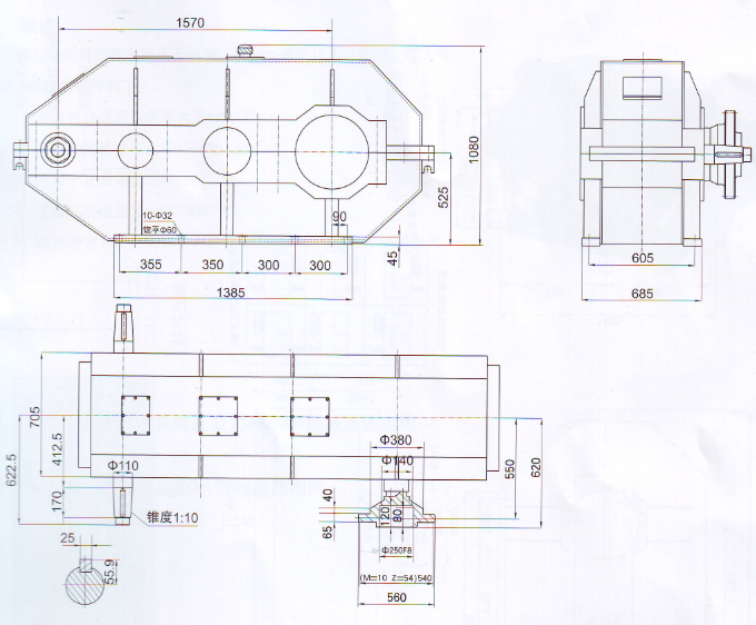- Gears made of high-quality low-carbon alloy steel 35CrMo, gear shafts made of 42CrMo, output shaft made of alloy steel 40Cr, the gearbox housing made of high-strength casting iron HT250, may also adopt better material as requested;