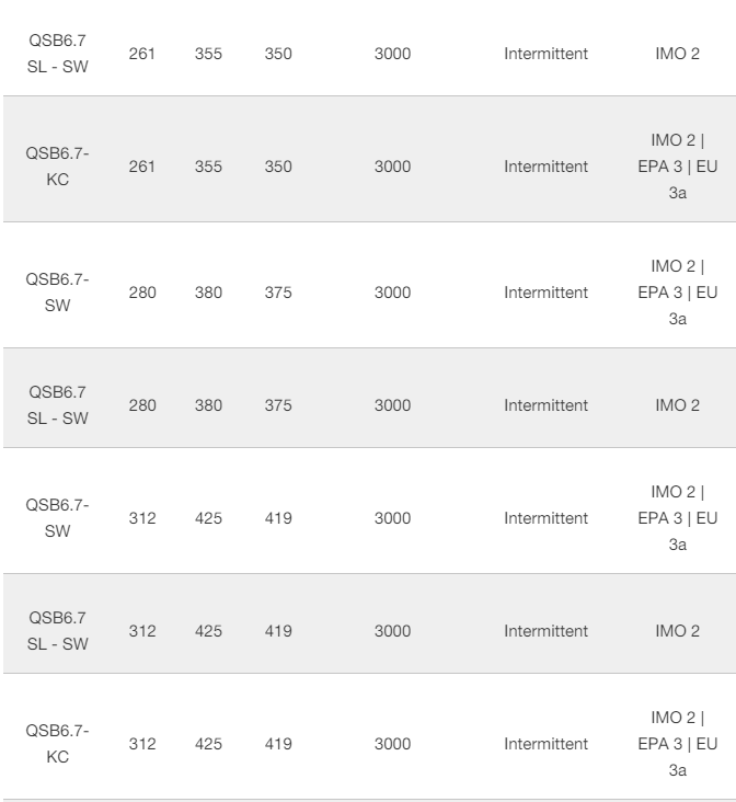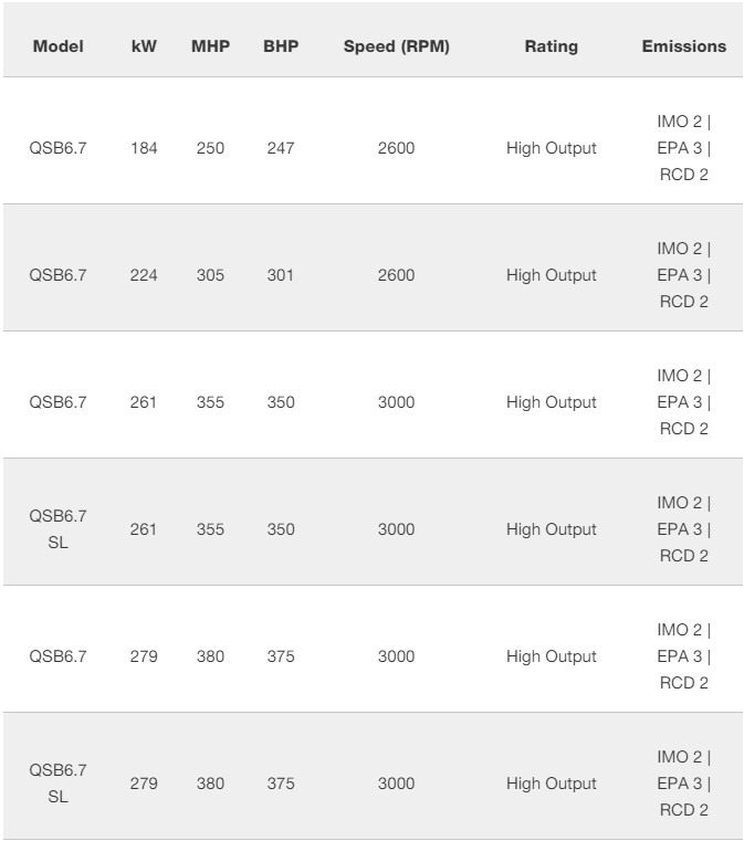 Commercial and Light Duty Marine Propulsion Engines (Variable Speed Ratings)
