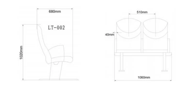 A.Chair surface is PU wear-resisting refractory high imitation leather or fabric B.Back for high-density polyester one-time forming high cold foam springback fire sponge, thickness according to the requirements; C.For high-density polyester one-time forming high cold foam cushion springback fire sponge, thickness according to the requirements; D.Seat beams, chair foot, armrest for high strength aluminum alloy 6063 oxide; E.Rail for high strength aluminum alloy 6061 oxide; F.Adornment to beams and rail head for PVC plastic resin materials; G.Rail decoration layering for environmental protection rubber material;