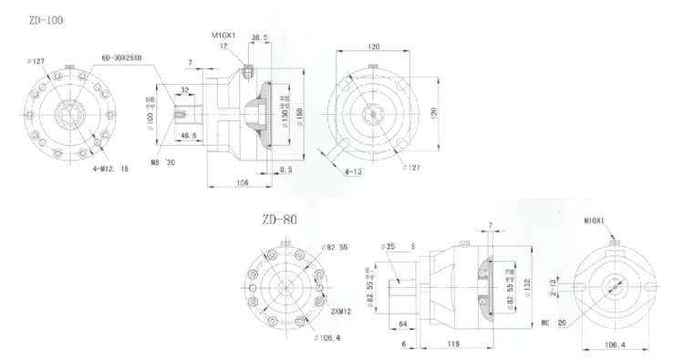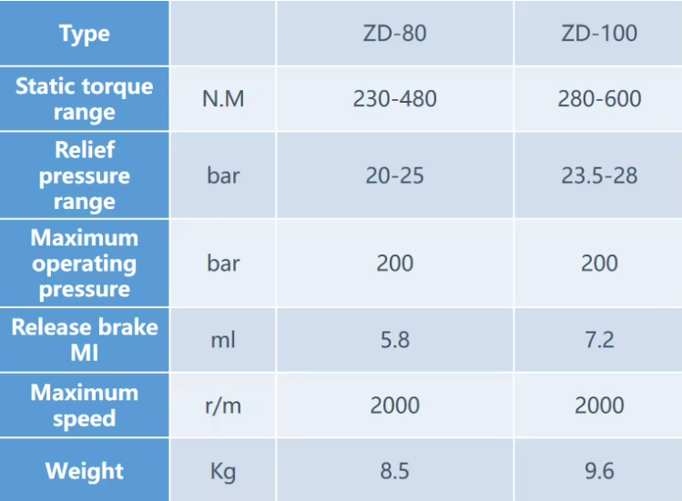 Application range of brakes: Reliable safety control brake lh-zd series, applied to the swing of the precise adjustment device or other means of transport and the "out of control" parts of equipment, the work of the special location and to capstan "out of control" protection, effectively solve the problem of the hydraulic motor can't self-locking slide. Lh-zd series brake device after precision of hydraulic pressure test, to ensure the stability of braking performance. Typical lh-zd multidisc brake used in overhead working truck, scissor lift car, low-speed traffic tools, agricultural harvesting equipment, small crane and other construction machinery. Note: the maximum return oil back pressure of ZD series multi-disc brakes should be less than 5bar.