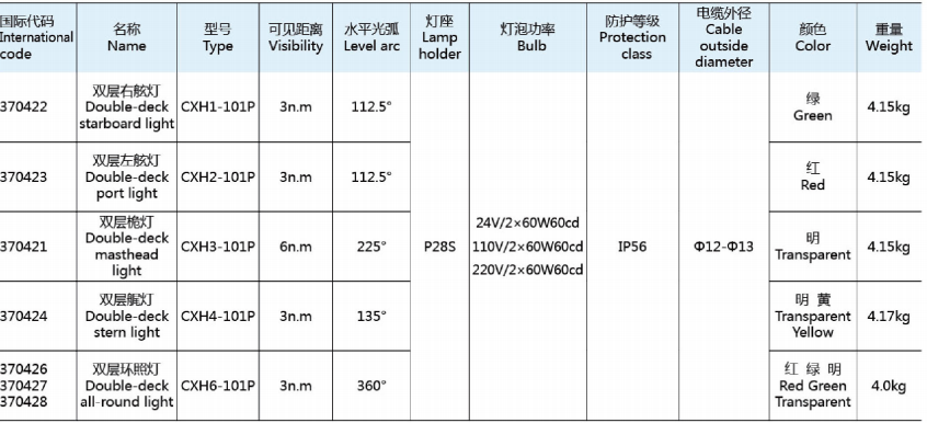 4.The signal lights adopt the signal light's bulb which conform to the ship norm,and the average life is more than 700h.