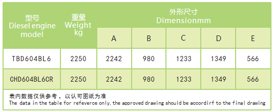 TBD604/TBD620L6 series marine power station, pump unit diesel engine dimensions and weight