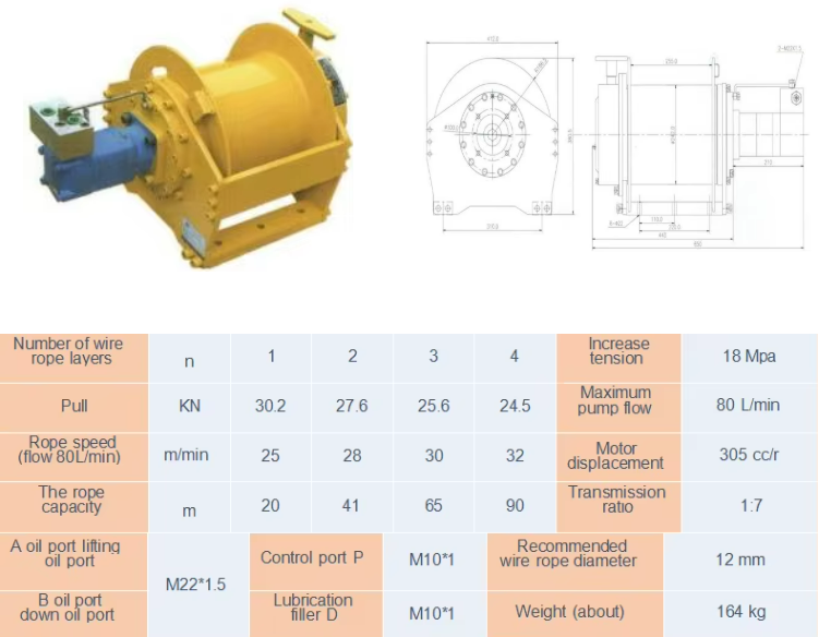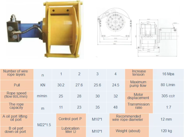 Specification This series hydraulic winch consists of cyclo idal motor, planetary gear reducer and brake. Threaded connection· steel frame, equipped with shuttle valve, balance valve and other safety control systems, with compact structure and small space, it is suitable for various lifting and traction equipment such as ships, docks and automobiles.