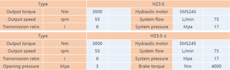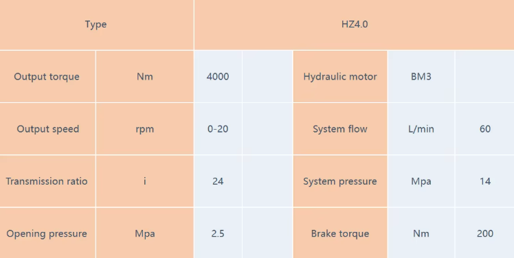 Structural characteristics : HZ series hydraulic rotary reducer is composed of hydraulic motor, planetary gear reduction, normally closed hydraulic braking, etc., adopt advanced technology level and processing means, configure shuttle valve, balance valve and other safety control system, so as to effectively ensure the strong bearing capacity and reliable operation of the product; Its compact structure, small occupancy space, widely used in engineering, ships, automobiles, agriculture and new energy and other rotary transmission and drive devices.