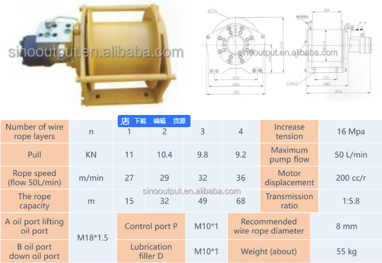 -Winch brake multi-disc brake, static braking torque 580N. M, maximum return oil back pressure should be less than 5bar.
