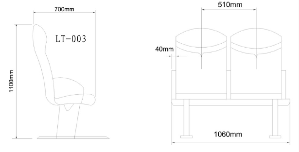 A.Chair surface is PU wear-resisting refractory high imitation leather,Genuine leather or fabric; B.Back for high-density polyester one-time forming high cold foam spring back fire sponge; C.For high-density polyester one-time forming high cold foam cushion spring back fire sponge; D.Seat beams, chair foot, armrest for high strength aluminum alloy 6063 oxide; E. Rail for high strength aluminum alloy 6061 oxide; F.Adornment to beams and rail head for PVC plastic resin materials; G.Rail decoration layering for environmental protection rubber material;