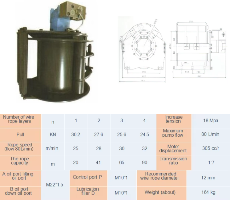 This series hydraulic winch consists of cyclo idal motor, planetary gear reducer and brake. Threaded connection· steel frame, equipped with shuttle valve, balance valve and other safety control systems, with compact structure and small space, it is suitable for various lifting and traction equipment such as ships, docks and automobiles.