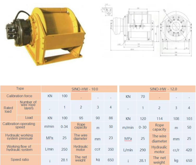 SINO-HW-10.0/12.0 Hydraulic Winch