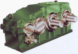 Rubber mixer and mill gearboxes are designed to accept fluctuating loads and high powers. The gearbox output shafts are generally connected to the mixer by mill spindles or gear couplings. The twin output shafts are arranged to rotate opposite to each other. This type of gearbox is also used for twin screw extruders, where additional thrust assemblies are incorporated.