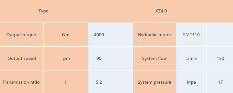 Structural features: XZ series hydraulic travel reducer is composed of hydraulic motor, planetary gear reducer, brake, etc. It adopts mujiao connected steel frame, equipped with shuttle valve, balance valve and other safety control systems. Its structure is compact and occupies little space. Specification:
